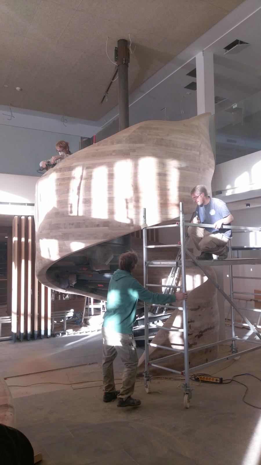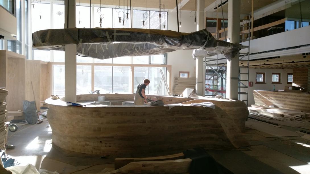 Schnell ging man in die Planung, denn der zeitliche Plan für den Hotelneubau war eng gesteckt und sollte durch die extravaganten Bar nicht verzögert werden. Erfahrung und Ideen vieler erfahrener, kreativer Köpfe von Ingenieuren und motivierten Handwerkern wurden gebündelt. Besondere Frästechniken, wurden für die Holzbearbeitung aus der Autoindustrie adaptiert, Transport und Montage bedurften einer besonderen logistischen Planung.