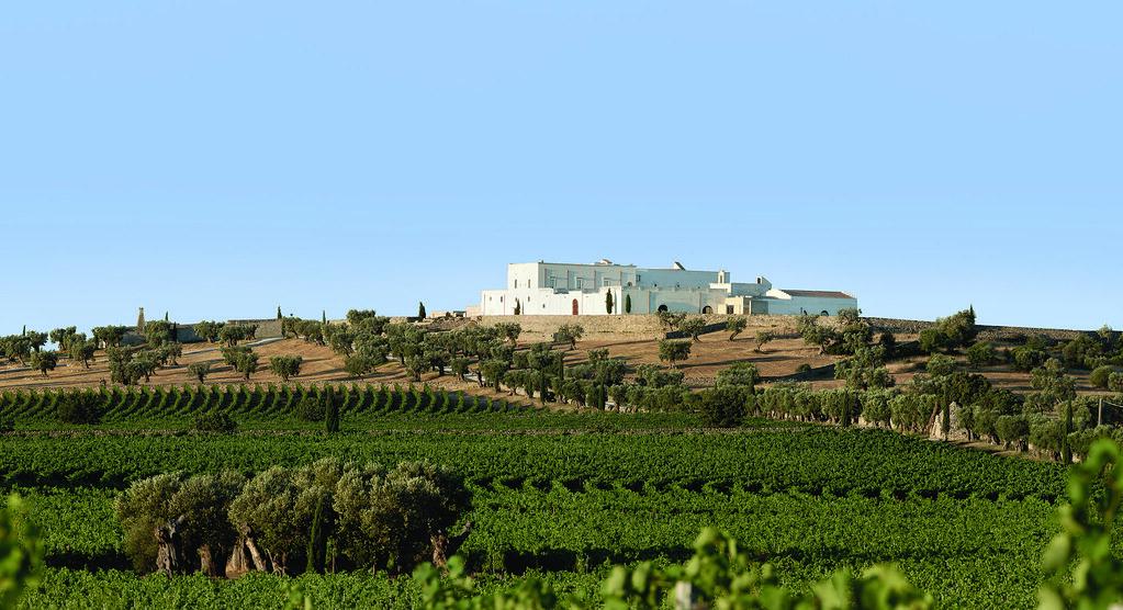 Von Ostuni aus führen schmale Straßen kilometerweit an aufgeschichteten Steinmauern entlang durch Olivenhaine. Ein Stopp lohnt sich, um die monumentalen Olivenbäume mit ihren in Jahrhunderten gedrehten und gewundenen Stämmen zu bestaunen. Nirgendwo gibt es ältere Olivenbäume als hier, es sind wahre Dinosaurier ihrer Art. Viele davon befinden sich im Besitz von Masserien, historischen Landgütern, die in Apulien zwischen dem 16. und 19. Jahrhundert entstanden sind. Die oft schlossartigen Herrenhäuser, umgeben von Wirtschaftsgebäuden und Unterkünften für die Bauern bildeten früher autarke Einheiten, Trutzburgen mit eigenen Ölmühlen, Backereien, Weinkellern und Zisternen, die mit ihren dicken Mauern gegebenenfalls auch Schutz vor Feinden boten. Im letzten Jahrhundert wurden viele aufgelassen, aber inzwischen sind sie wieder auferstanden als landestypische, oft luxuriöse Feriendomizile. Aber trotz modernem Komfort, Infinity-Pool und Spa-Bereich verleugnen sie ihren Ursprung nicht, sondern betreiben nebenbei weiter Landwirtschaft. Die meisten produzieren ihren eigenen Wein und Olivenöl, kultivieren Obstbäume und Gemüsegärten, die frische Zutaten für die Restaurant-Küchen liefern. Ein Paradebeispiel ist die Masseria Amastuola, umgeben von preisgekrönten Weingärten. Die Besonderheit des Bioweingutes ist die Gestaltung der Weinberge, die nicht rechteckig, sondern in weichen Wellen angelegt sind, so als würde ein Wind sie kräuseln. Das historische Gebäude aus dem 15. Jahrhundert wurde mit viel Liebe zum Detail restauriert und verbindet authentische apulische Architektur mit modernem Design und Komfort. Weitläufigkeit ist auch in dieser Masseria ein prägendes Merkmal. Die leuchtend weißen Gebäude liegen Inmitten grüner Hügel, nur wenige Kilometer vom Ionischen Meer entfernt und von der Terrasse aus genießt man gigantische Blicke über die Landschaft des Salento bis hin zum Golf von Tarent. Restaurant und Weinkeller verwöhnen die Gäste mit apulischen Spezialitäten und wer Lust hat, kann bei Weinproben und Kochkursen sein kulinarisches Wissen erweitern.