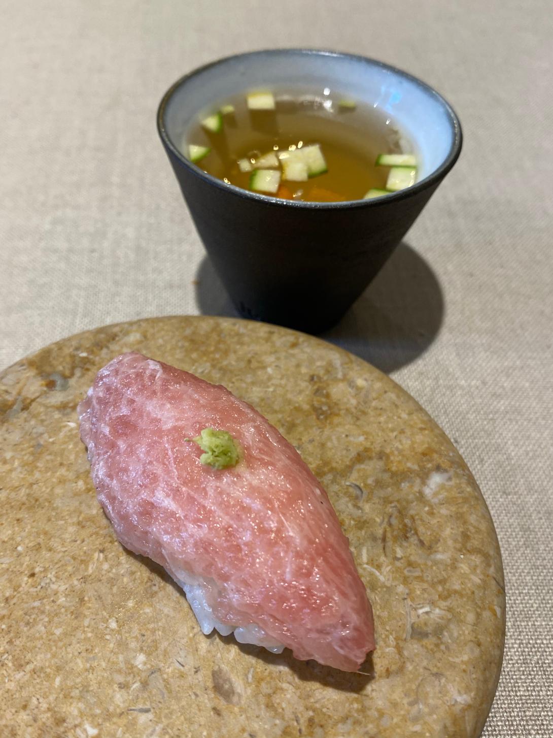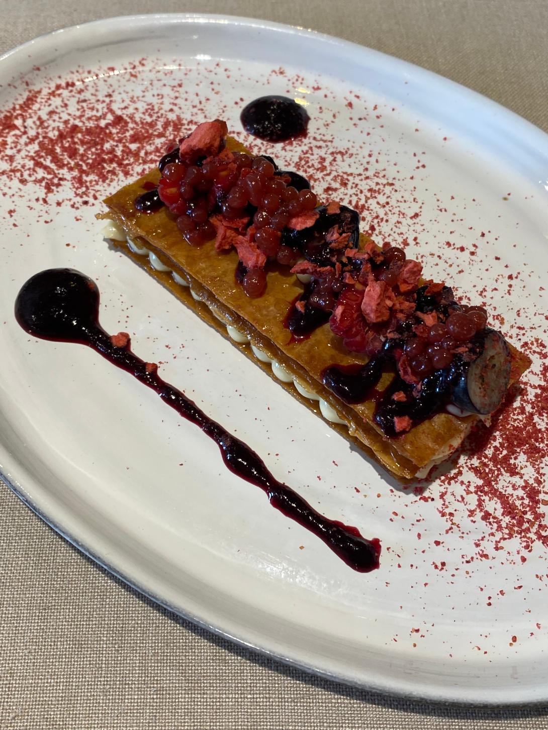 Die Gazpacho mit Garnelen-Tartar schmeckt so intensiv wie sie grün ist. Das gegrillte Ochsen-Knochenmark mit Jakobsmuscheln und Ponzu-Sauce bietet einen herrlichen Kontrast zwischen weichen und festen Komponenten. Der Drink aus Äpfeln mit Sahne ist eine Balance zwischen süß-sauer. Die gebratenen Enten-Cannelonie mit Pilzen, Sommertrüffel und Foie-Scheiben zerlaufen auf der Zunge. Die Thunfisch-Parpatana mit Birne, Zitronengras und Dashi-Brühe ist Wechselspiel von süß, sauer, scharf und mild zugleich. Die Brühe wird am Tisch mit einem japanischen Kaffee-Bunsenbrenner zubereitet. Die Waldpilze zur Angus-Lende duften intensiv. Die Desserts sind nicht weniger schmackhaft. Das Eis am Stil ist eine Tee-Matcha-Pistazien-Komposition. Die Creme Millefeuille mit roten Früchten passt perfekt zum Espresso. Und zum Schluss folgt in einem kühlen Steintopf noch eine hausgemachte Praline als krönender Abschluss.