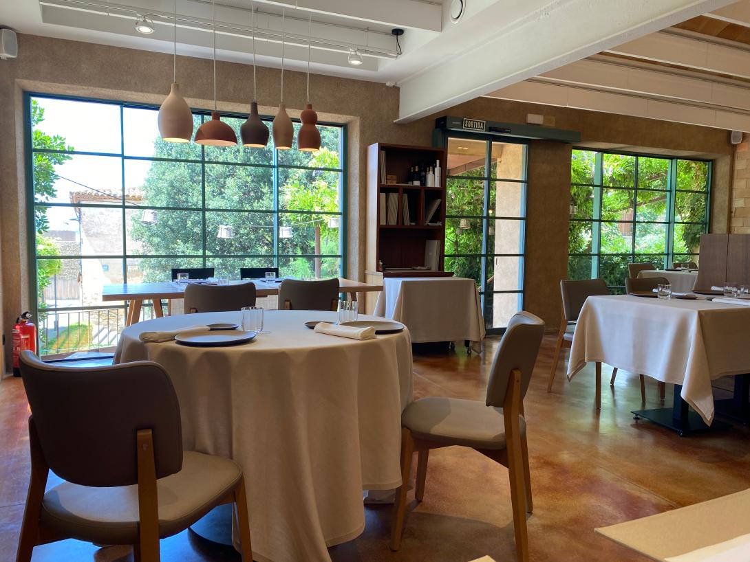 Mònica Farré, die Partnerin von Vicenç Fajardo, begrüßt mich und führt mich an einen Tisch in der Ecke. Der Raum ist in warmen Farben gehalten, angenehm, unaufdringlich. Wer mag, kann auch draußen auf der schattigen Terrasse unter Glyzinien speisen - ideal für Sommerabende.
