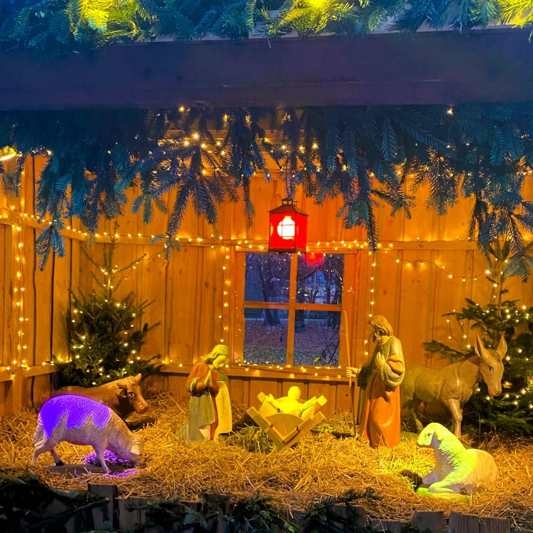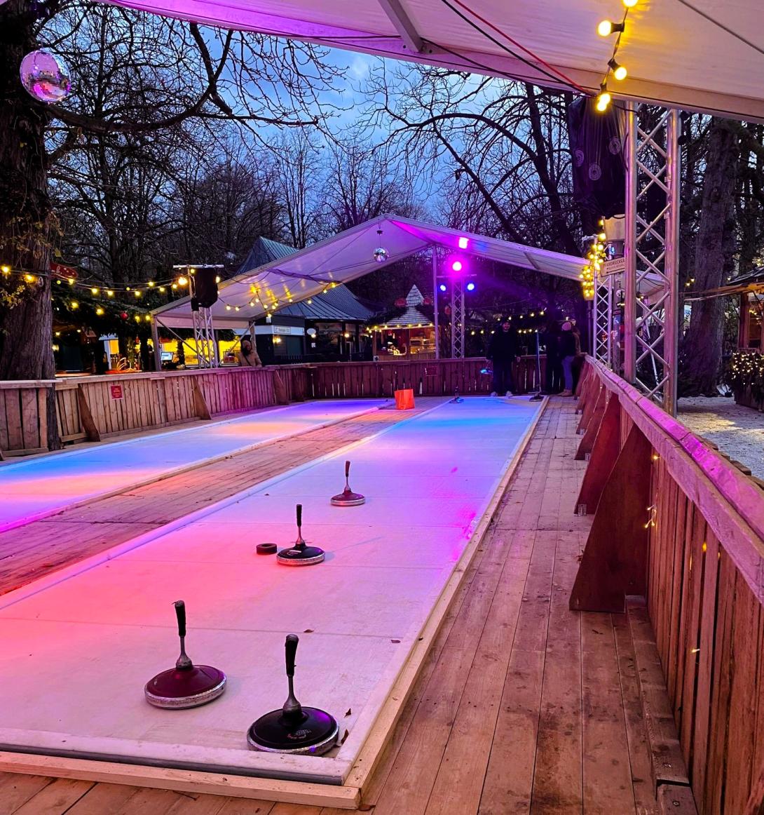 In den Holzhütten, die den Chinesischen Turm umringen bieten Künstler:innen und Handerker:innen außergewöhnliche Produkte für Weihnachten an. Es werden nur regionale Produkte, handwerklicher Herstellung und selbstverständlich aus natürlichen Materialien angeboten. Die Highlights sind die Eisstockbahn, das historische Karussell und die Kindereisenbahn.