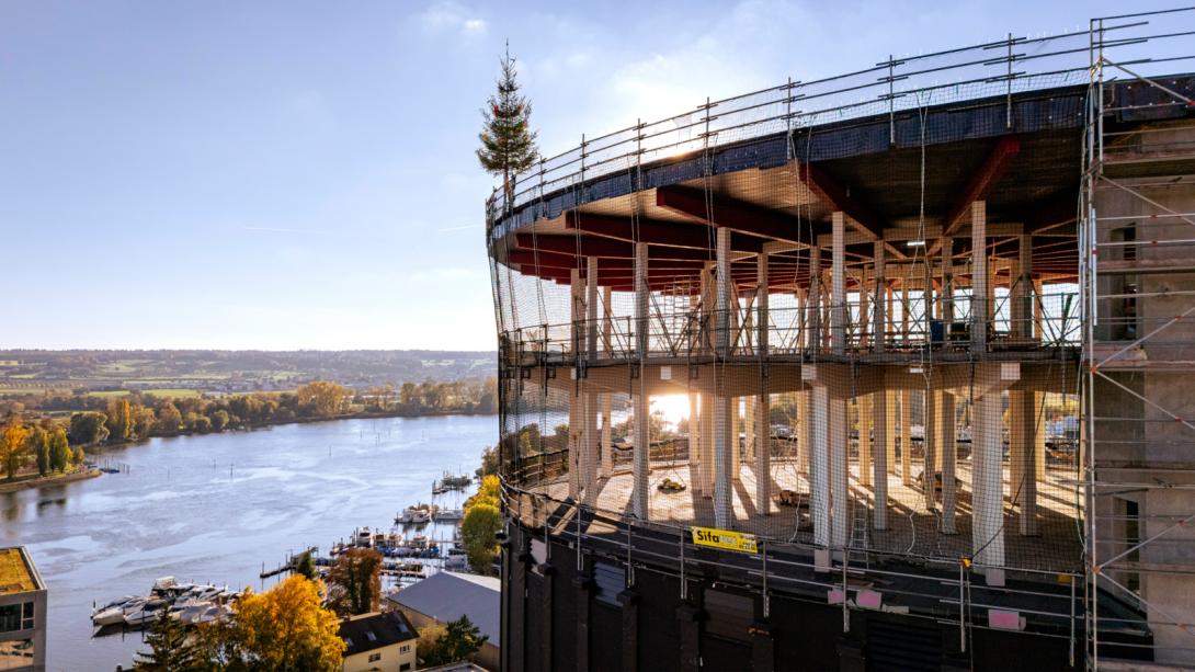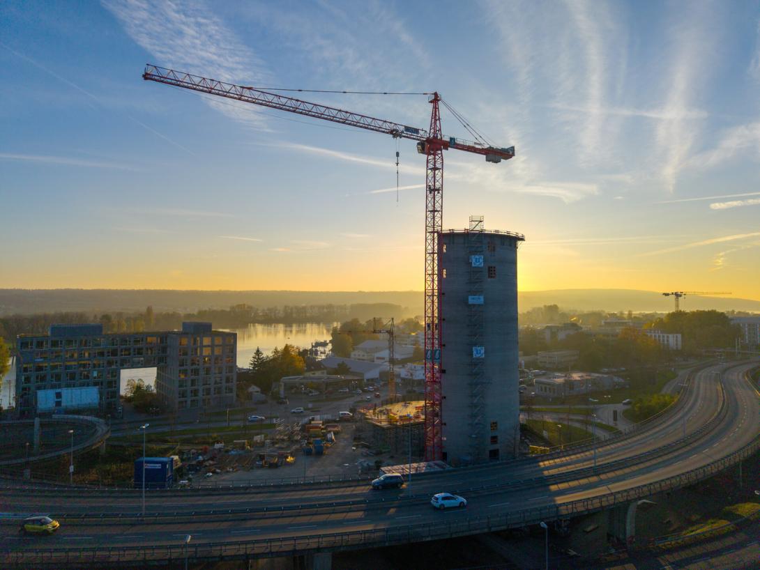 Besonders hervorzuheben ist die nachhaltige Holzbauweise des Turms. Architekt Matthias Sauerbruch ist überzeugt, dass das Bauwerk mit seiner je nach Perspektive wechselnden Fassade zu einem markanten westlichen Stadttor und einem neuen Wahrzeichen von Konstanz avancieren wird.