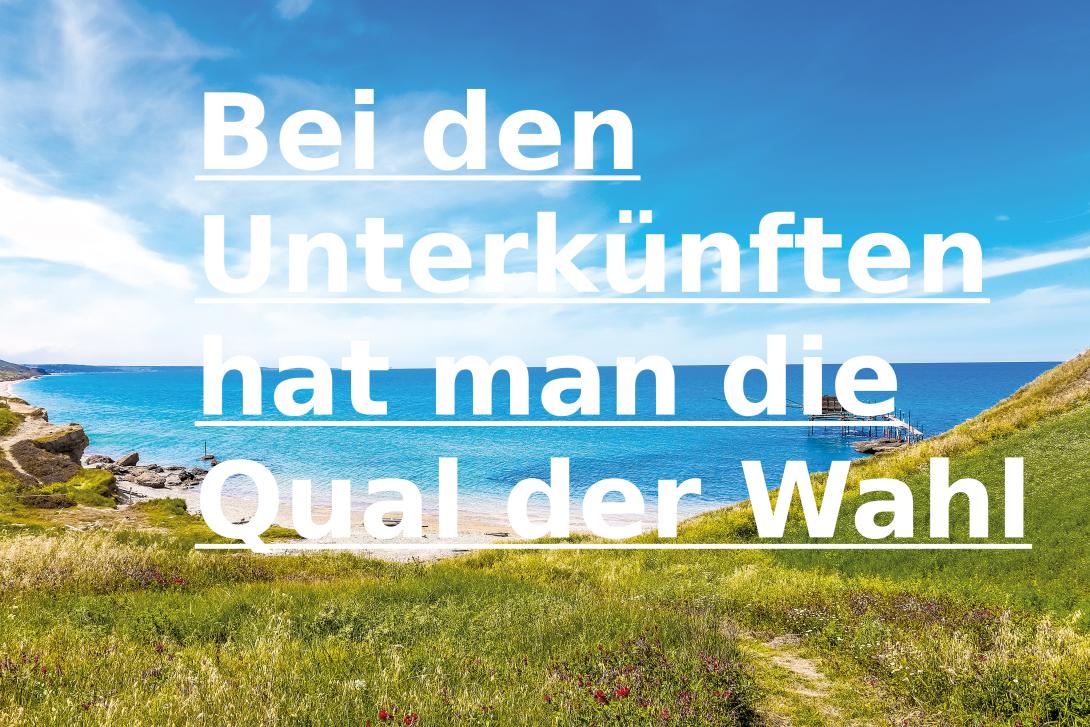 - Anzahlung von 30% bei Buchung (Abrechnung erfolgt über Partner-Reiseveranstalter Il Bosso)