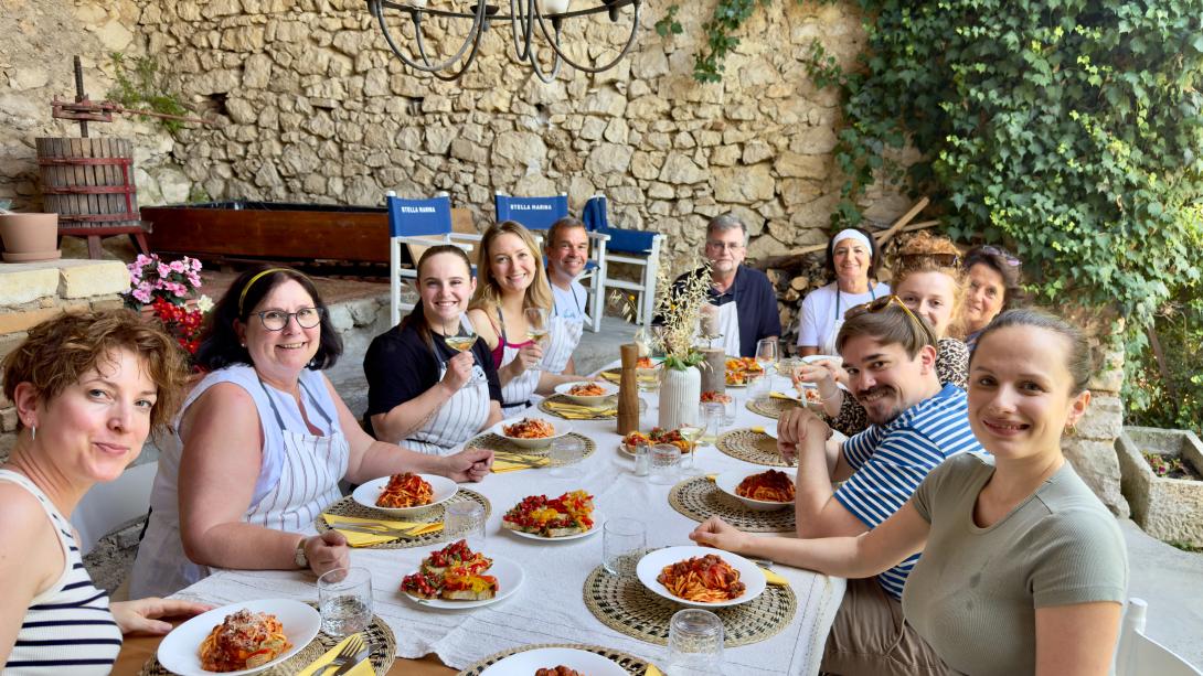 Die Abruzzen gelten als echter Geheimtipp für alle, die Italien lieben: Hier treffen imposante Gebirgszüge auf idyllische Ortschaften, traumhafte Küstenabschnitte und eine Küche, die so authentisch und abwechslungsreich ist wie die Region selbst. Zwischen der Adria und dem Apennin verschmelzen in der abruzzesischen Gastronomie die Aromen von Land und Meer zu einer einzigartigen Mischung. Zu den kulinarischen Höhepunkten, die man vor Ort keinesfalls verpassen sollte, zählen unter anderem der Besuch von lokalen Märkten, Weingütern und einer Olivenölmühle. Wir kosten Arrosticini, das wohl bekannteste Streetfood der Region, sowie Brodetto alla Vastese, einen aromatischen Fischeintopf mit verschiedenen Meeresfrüchten. Für unsere Kochkurse besorgen wir frische Zutaten direkt auf den Märkten oder bei kleinen Familienbetrieben und zaubern daraus landestypische Gerichte. So erschmecken wir die wahre Essenz der Abruzzen.