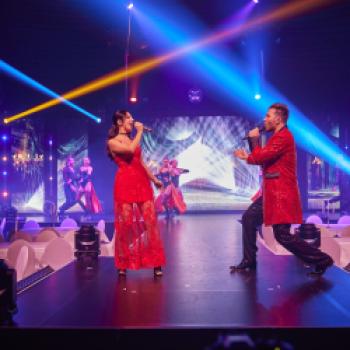 Die vier Köche richten auch an. Auf einem etwa drei Meter langen Fließband fahren die Teller langsam an ihnen vorbei, jeder Kochmacht nur wenige Handgriffe – aber die müssen sitzen, und zwar in Perfektion. „In 15, spätestens 20 Minuten sind alle 350 Essen serviert“, gibt der Chef die Marschrichtung vor. Die Teller sind allesamt angewärmt. „Nichts ist schlimmer, als wenn ein warmes Essen auf einen kalten Teller kommt“, so Adam. Damit alles reibungslos funktioniert, absolviert die Crew vor der Premiere ein einwöchiges „Trainingslager“. Weitere große Herausforderung: es muss nicht nur einen Abend perfekt klappen, sondern 75 Abende hintereinander. „Über eine so lange Zeit muss man das Team immer wieder motivieren und bei Laune halten“, weiß der Chefkoch.