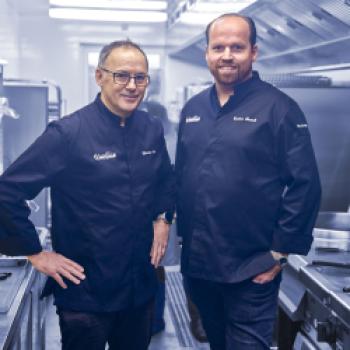 350 Gäste finden Platz im Zelt am Heidelberger Neckarufer, serviert wird ihnen zwischen den Showeinlagen wahlweise ein klassisches Dreigangmenue mit Fleisch oder ein vegetarisches. Chefkoch ist Christian Adam, der bei der Menue-Zusammenstellung und der Umsetzung eng mit Tristan Brandt zusammenarbeitet. „Für 350 Menschen zu kochen ist nicht das Problem“, sagt er. „Die große Herausforderung ist die ganze Logistik dahinter. Wir verarbeiten zum Beispiel pro Woche fast eine Tonne Fleisch.“ Für die zweieinhalb Monate in der altehrwürdigen Universitätsstadt wurden mehrere große Küchencontainer aufgestellt, aufgeteilt in die Bereiche „warm“, „kalt“, „anrichten“ uns „spülen“. Etwa 100 Quadratmeter groß ist das kleine Küchen-Container-Dorf.