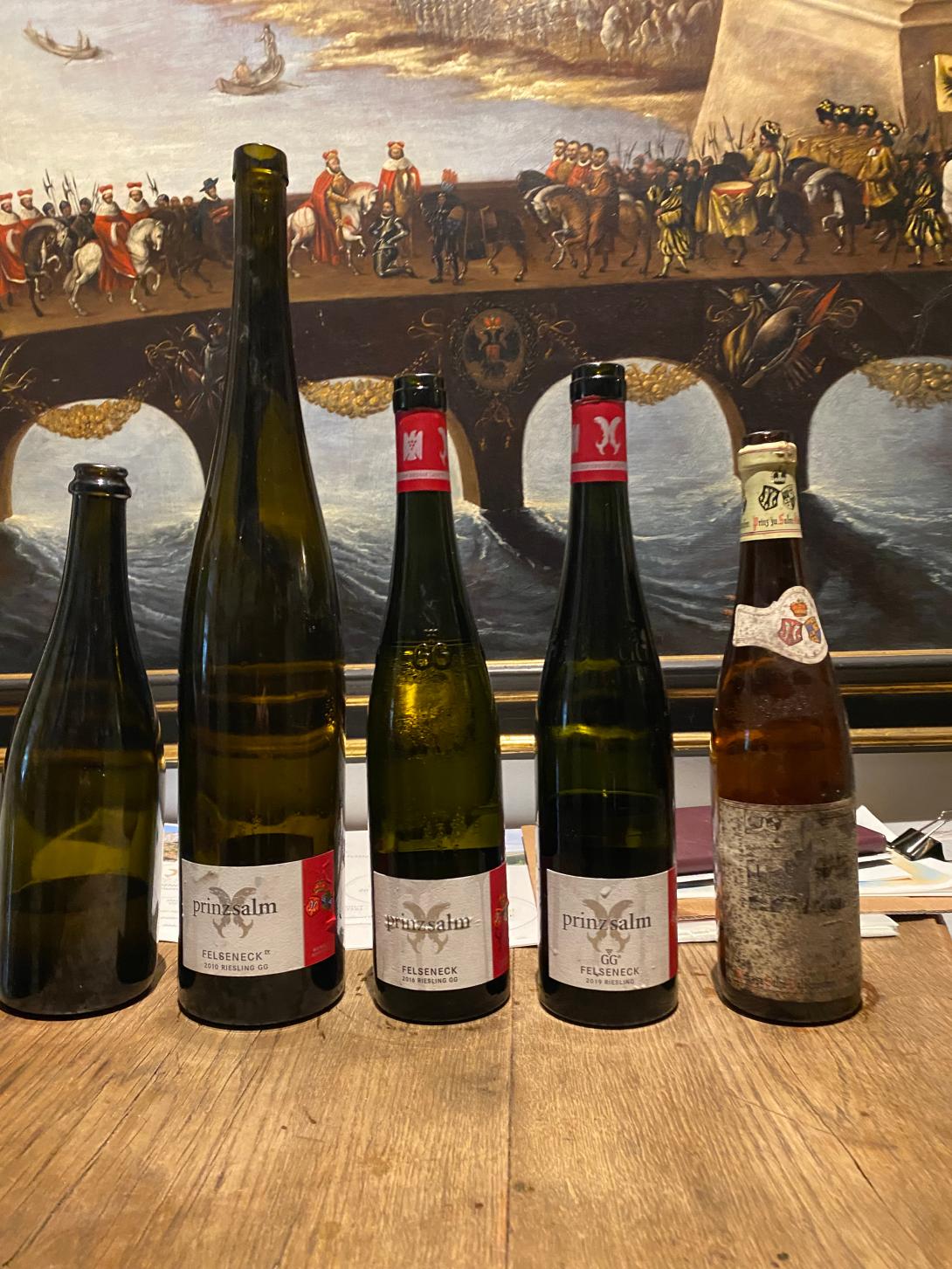Das zeigt sich geschmacklich in den Weinen: Die Rieslinge von Prinz Salm weisen markante mineralische Noten auf, oft mit Anklängen an Steinobst, Zitrusfrüchte und einer frischen, langlebigen Säure. Der Schiefer fördert eine tiefe Wurzelbildung, die die Aufnahme von Mineralstoffen verbessert und somit die typische "Mineralität" im Wein verstärkt – ein sensorischer Eindruck von Frische und Eleganz, der die Salm-Weine weltweit beliebt macht. Die Nähe zum Fluss Nahe sorgt zudem für ein mildes, kontinentales Klima mit kühlen Nächten. Felix zu Salm: „Das unterstützt die Aromenentwicklung.“ Das Weingut mit neun Beschäftigten setzt auf handverlesene Ernte und biologischen Anbau, um die natürlichen Vorteile des Terroirs optimal zu nutzen. So entstehen vor allem elegante Weine. Besonders hervorzuheben sind die trockenen Rieslinge aus dem Felseneck, die für ihre mineralische Frische und Langlebigkeit bekannt sind – und zwar weit über Deutschland hinaus.