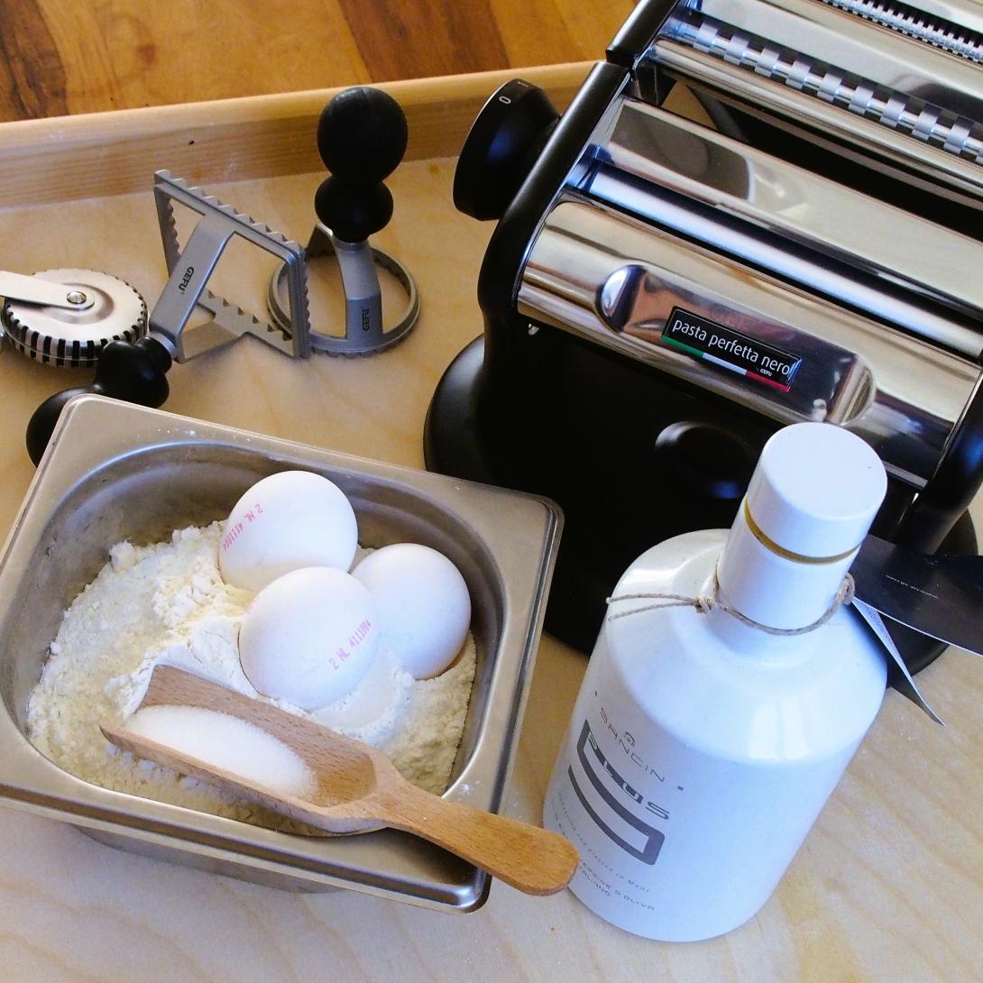 - Nacheinander die Eier und das Olivenöl mit den Fingern oder einer Gabel mit dem Mehl vermengen.