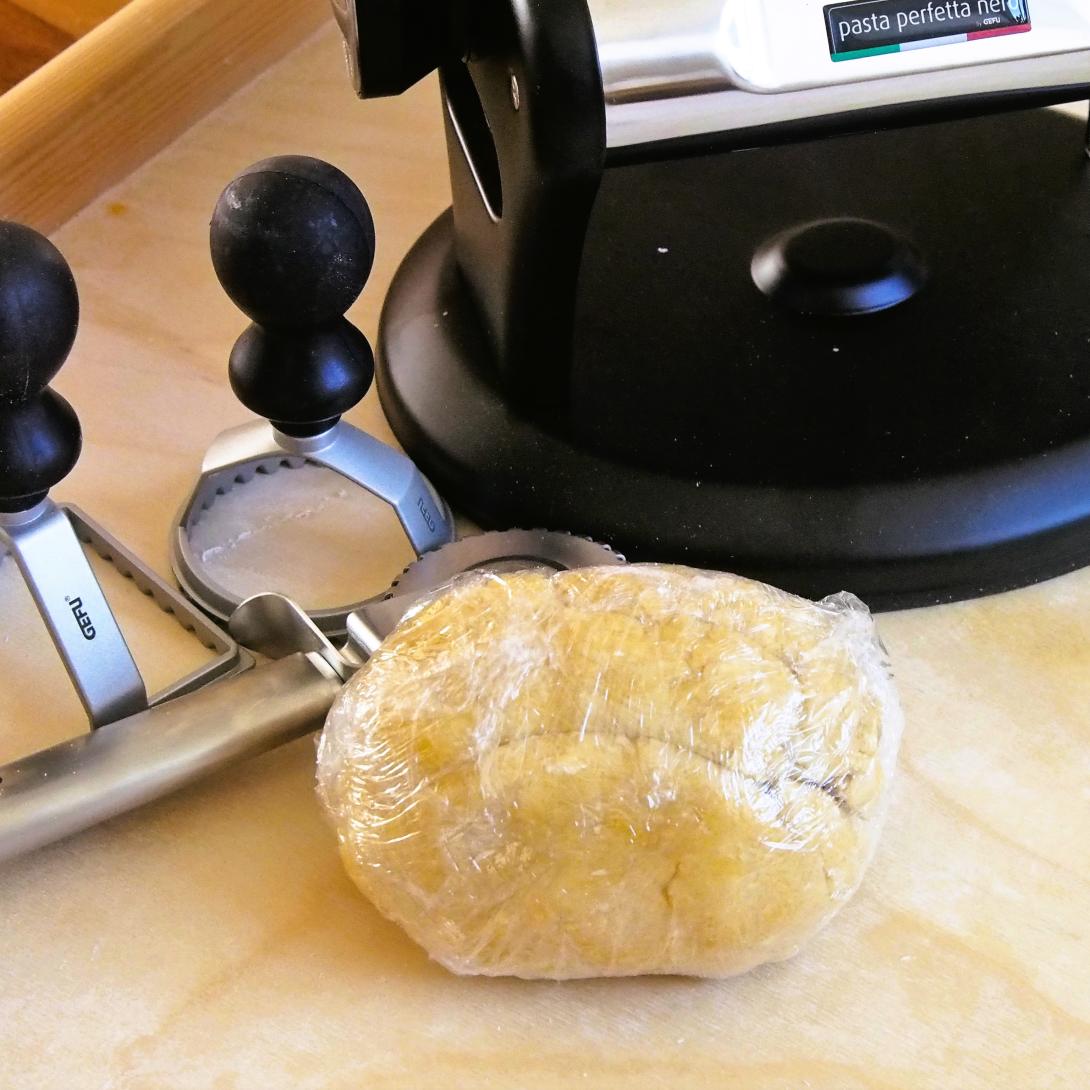 - Den Teig in eine Küchenfolie einpacken und im Kühlschrank mindestens 30 Min. ruhen lassen.