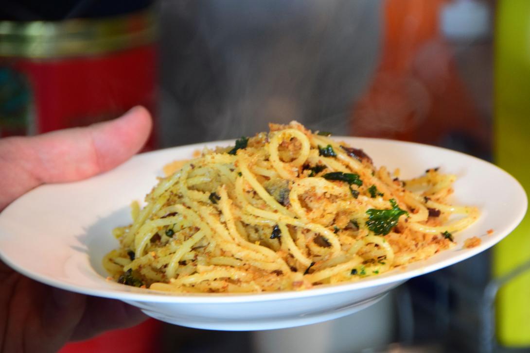 Typisch für die ersten Gänge der Küche des Italienischen Südens sind Gänge mit Semmelbrösel. Die arme Landbevölkerung der Basilicata mischte diese z.B. mit Spaghetti, wie in diesem Gericht.